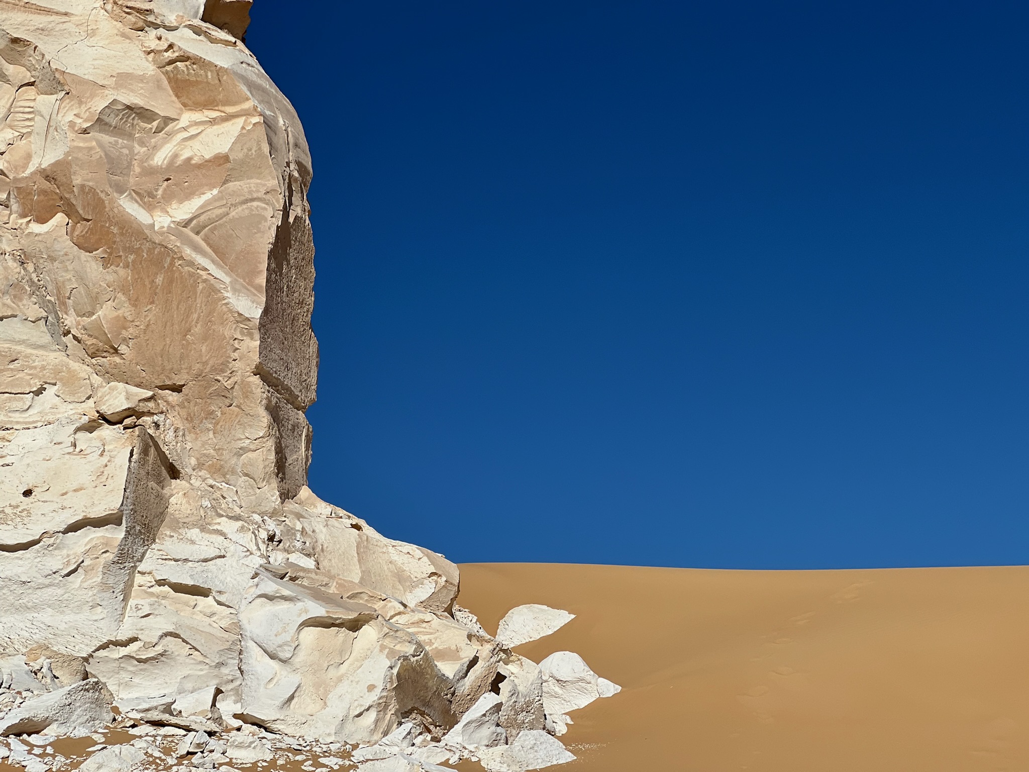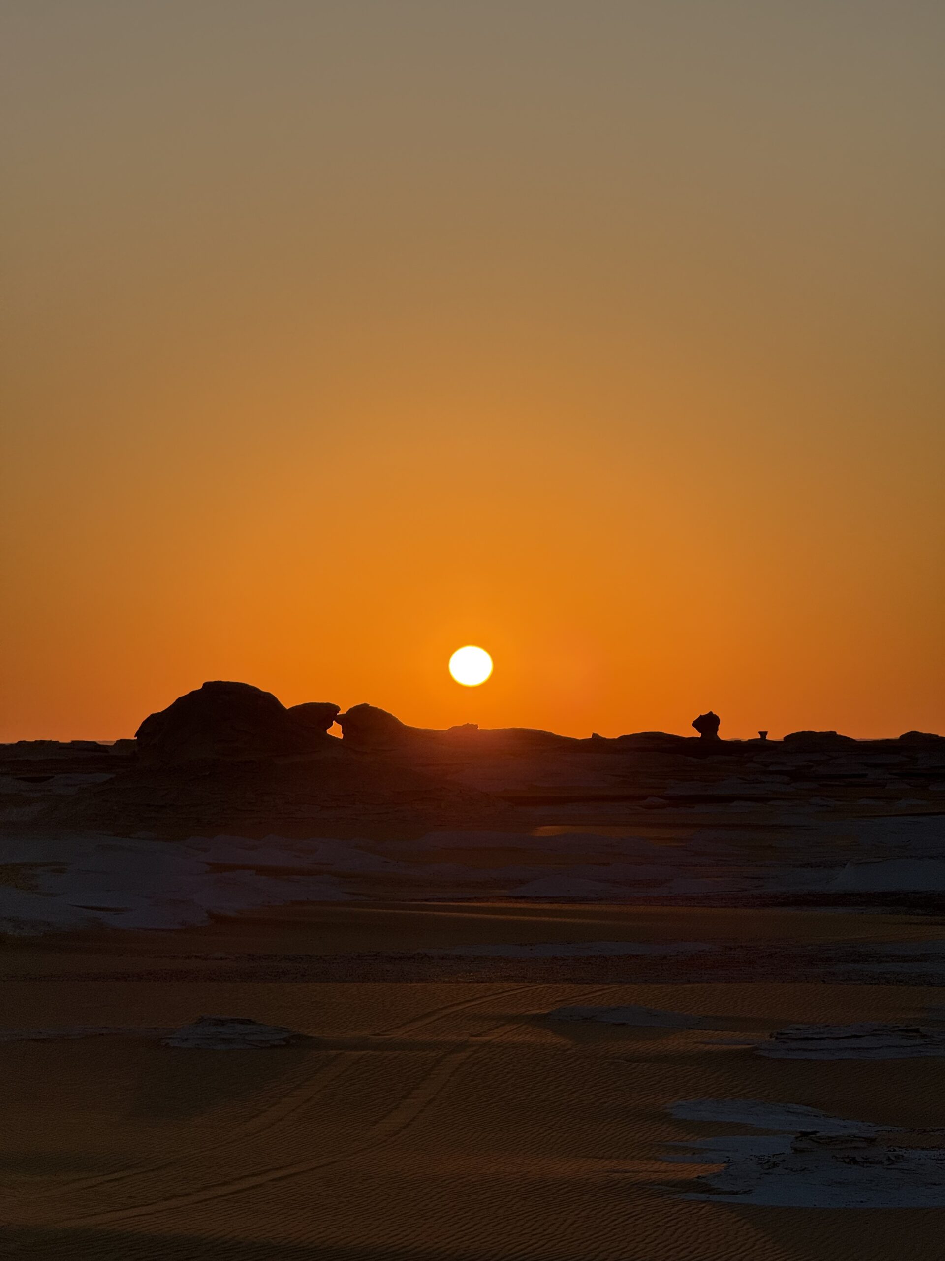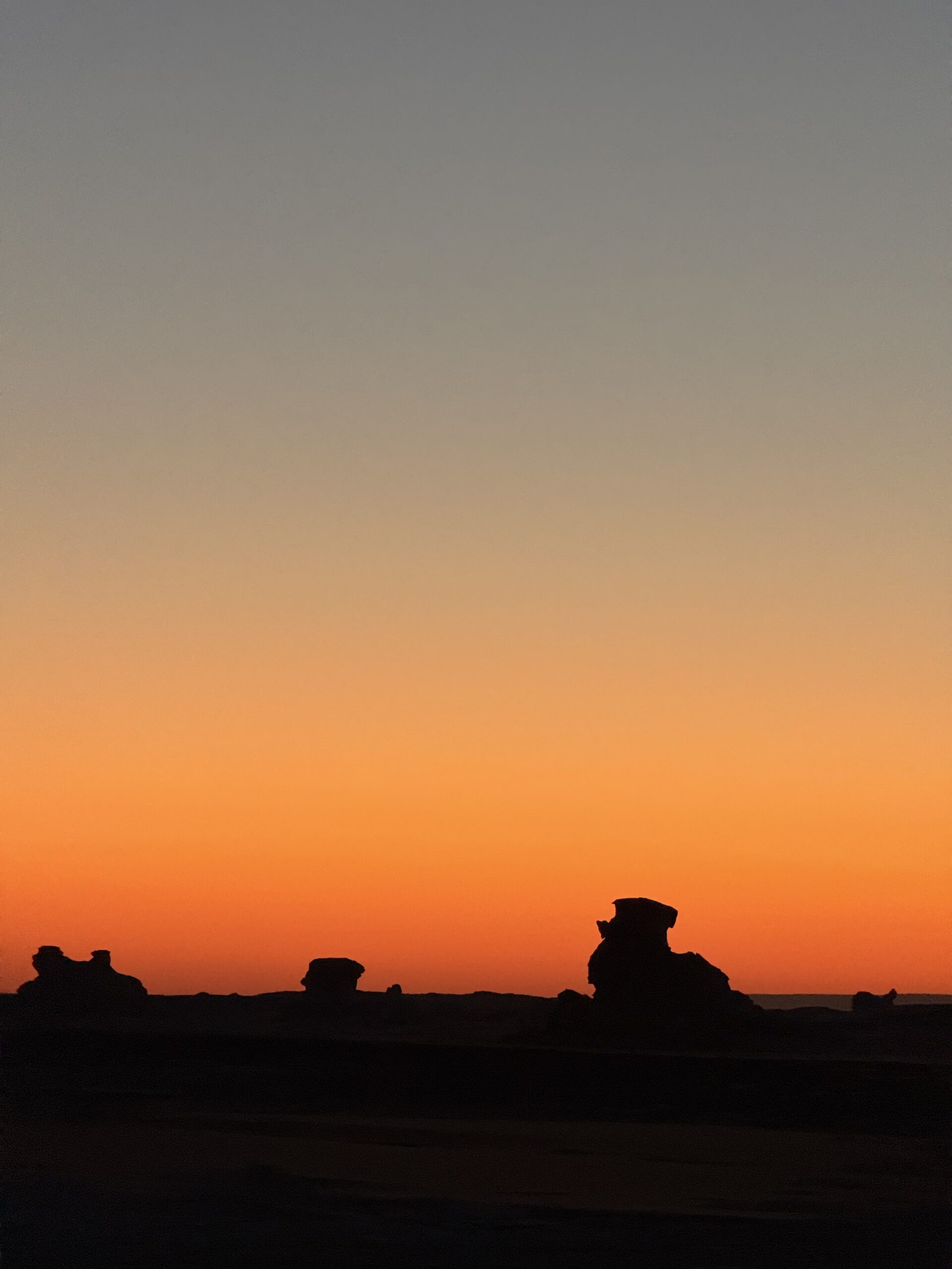 •As the sun begins to set, we sail into White Desert, a prehistoric seabed now filled with beautiful Natural formations.
